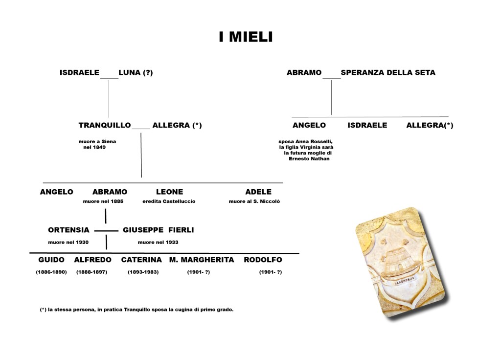 Nello Stato Pontificio, scosso nel periodo a cavallo tra la fine del Settecento e l’inizio dell’Ottocento, dai continui sommovimenti derivanti dalla Rivoluzione francese prima e dal periodo Napoleonico poi, la restaurazione papalina rialza la testa e si accanisce con tenacia contro gli ebrei. I quali non possono svolgere se non attività prestabilite, devono vivere nel ghetto, non possono acquistare beni immobili, devono sottoporsi a periodici corsi di conversione al cattolicesimo. Forse sarebbe stato più opportuno usare il condizionale perché evidentemente i Mieli sono comunque riusciti ad accumulare una grande ricchezza e, essendo a conoscenza che il Granducato di Toscana ha una legislazione molto più liberale verso di loro, progettano di trasferirsi. È così che nella zona di Sovicille e Rosia comprano tutte le proprietà Chigi: la villa delle Volte, Toiano, Valli, la fattoria delle Reniere ed invece in Val d’Orcia, fin dal 1837, acquistano la splendida tenuta di Castelluccio ed infine stabiliscono la loro residenza senese in via delle Logge, anche se nel censimento del Granducato del 1841 non risultano ancora residenti in Toscana.